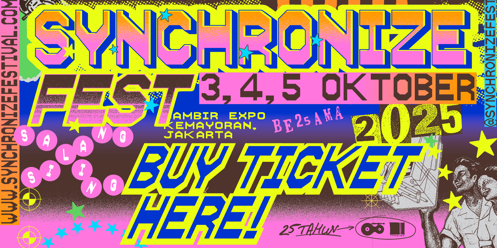 Pada edisi satu dekade Synchronize Festival yang digelar di Gambir Expo Kemayoran, 3, 4, 5 Oktober 2025, manifestasi semangat kolaborasi diangkat dalam tema besar “Saling Silang” yang lahir dari simbol sederhana angka romawi untuk sepuluh, “X”, dan kemudian dimaknai sebagai tanda pertemuan lintas zaman, lintas genre, lintas energi.